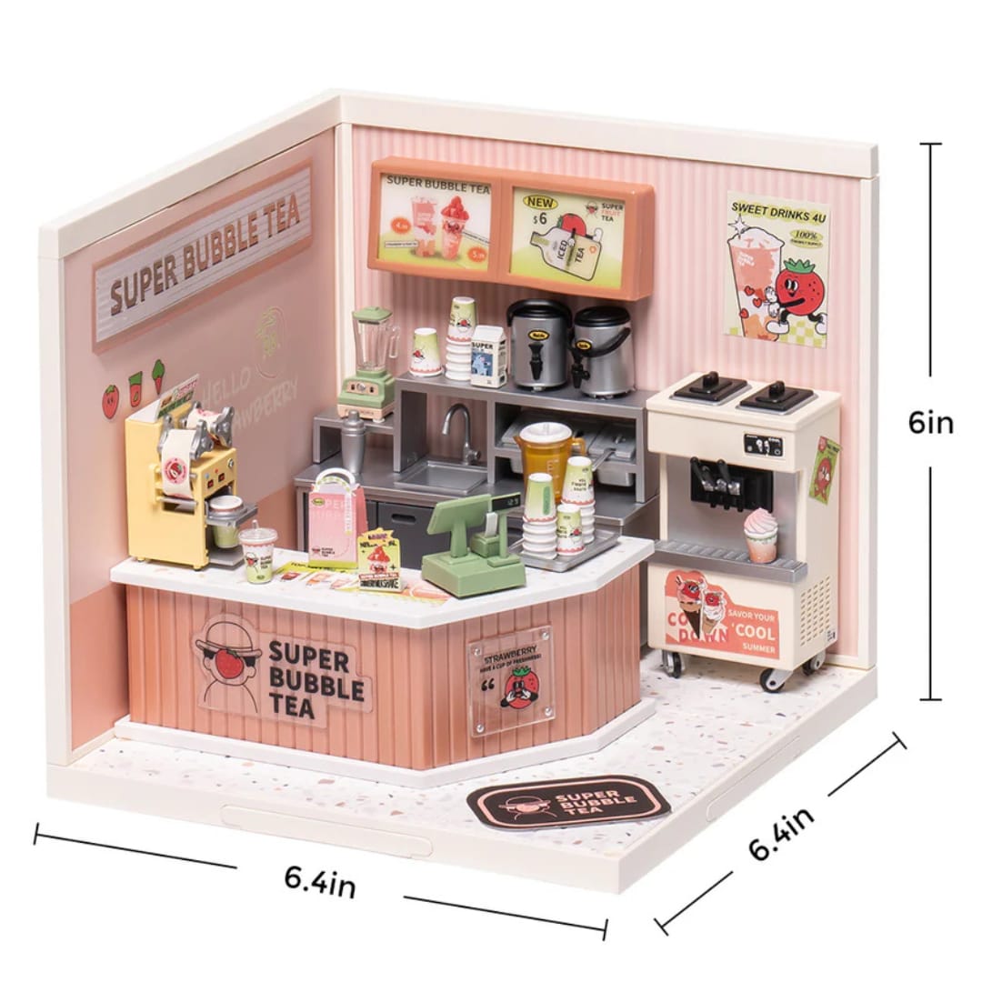 Bring creativity to life with the Super Store Double Joy Bubble Tea DIY Miniature House. This detailed building kit lets you create your own tiny bubble tea café complete with charming décor and soft LED lighting. A fun and engaging project for hobby lovers, collectors, and thoughtful gift-givers.
